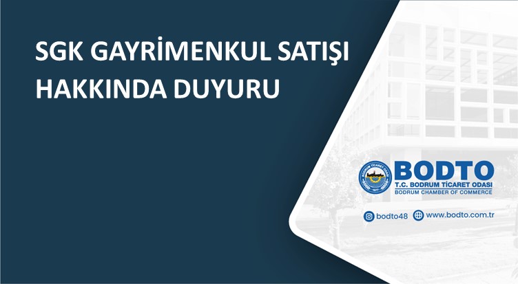 Türkiye Odalar ve Borsalar Birliği (TOBB) tarafından Odamıza iletilen yazıda, Sosyal Güvenlik Kurumu’nun yazısına atıfla, SGK gayrimenkul satışına ilişkin ihale duyurusu ekte bilgilerinize sunulmaktadır. Sosyal Güvenlik Kurumu ait olan ekli listede tapu bilgileri yazılı gayrimenkullerin satışı ihalesi, açık artırma usulü ile Elektronik Satış Portalı üzerinden yapılacaktır. Elektronik Satış Portalına erişim www.sgk.gov.tr adresinden sağlanmaktadır.