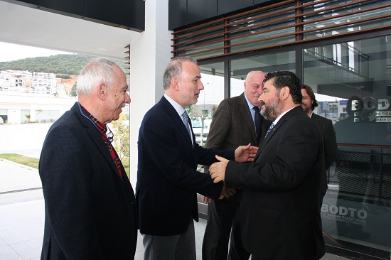 Bodrum Ticaret Odası yeni hizmet binasına taşınmasının ardından konuklarını ağırlamaya devam ediyor. 23 Şubat Cuma günü TOBB Yönetim Kurulu Başkan Yardımcısı Halim Mete, İMEAK Yönetim Kurulu Başkanı Metin Kalkavan ve Deniz Ticaret Odası Bodrum Şube Başkanı Gündüz Nalbantoğlu, Bodrum Ticaret Odası Meclis Başkanı İlhan Ersan ve Yönetim Kurulu Başkanı Mahmut Serdar Kocadon'u makamlarında ziyaret etti.